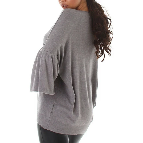 Tunique Pull Gris NASTY, Une très jolie tunique pull, qui vous garantira douceur et chaleur à la mi saison. On aime ses manches évasées à partir du coude, qui apporte un côté graphique au pull. Il est doté d’un joli col rond bateau., Ce pull est d’une longueur mixte, d’environ 58cm à l’avant et d’environ 70cm à l’arrière. Il est composé à 50% Viscose et 50% Polyamid., , ,