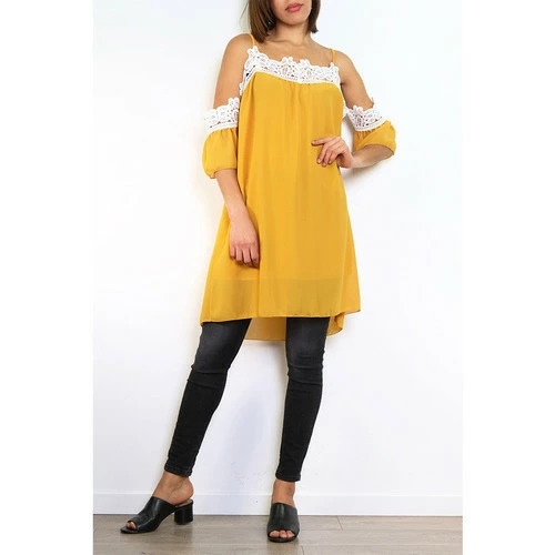 Tunique Color moutarde O’VAVIFA, Robe tunique taille unique jaune à liseré dentelle crochet blanc. Fines bretelles et volants. Tissu doublé fluide et léger., Composé à 100% polyester. Tendance cet été ! Très agréable à porter sur un jean ou un slim., , ,