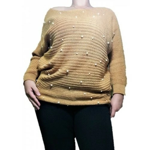 Pull avec perles Moutarde, Craquez pour ce joli pull oversize agrémenté de jolies perles nacrées sur le devant. Avec ses manches chauve, souris, il vous apportera confort et chaleur. , Ses mailles fines donneront l’impression d’un pull tricoté à la main., Composition : 100% acrylique. Dimensions : longueur 69 cm, largeur à la taille 49 cm, longueur de manche 62 cm. , Convient au tailles M, L, XL et XXL