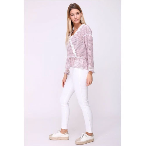 Tunique Rose MELISSA, Optez pour cette jolie tunique à manches longues en tissu rose à imprimé. Agrémentée de splendide liserés en dentelle crochet blanc. Sublime liseré résille en bas des manches., Cette tunique est composée à 100% polyester. Idéal en cette saison avec un pantalon et des escarpins., , ,