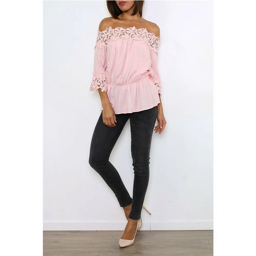 Tunique Pink Dentelle K&E DIFFUDION, Tunique col bateau tombant sur les épaules. Liseré dentelle crochet sur le col et sur les manches. Manches semi longue et élastique à la taille., Composé à 100% viscose. Idéal avec un jean ou short. Très féminin et tendance !, , ,